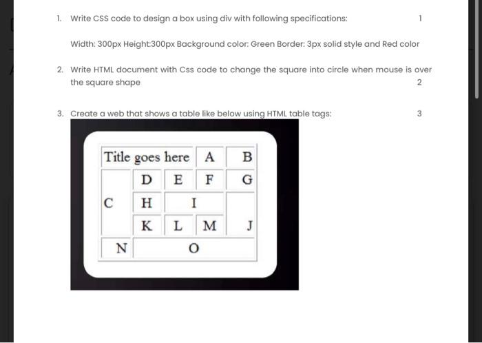 Solved 1. Write CSS code to design a box using div with | Chegg.com