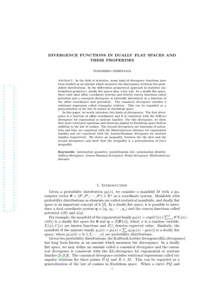 Divergence Functions in Dually Flat Spaces and Their Properties | PDF ...