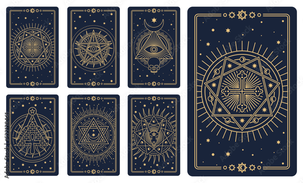Tarot cards. Astrology arcana cards or occult ritual tattoo set. Tarot ...