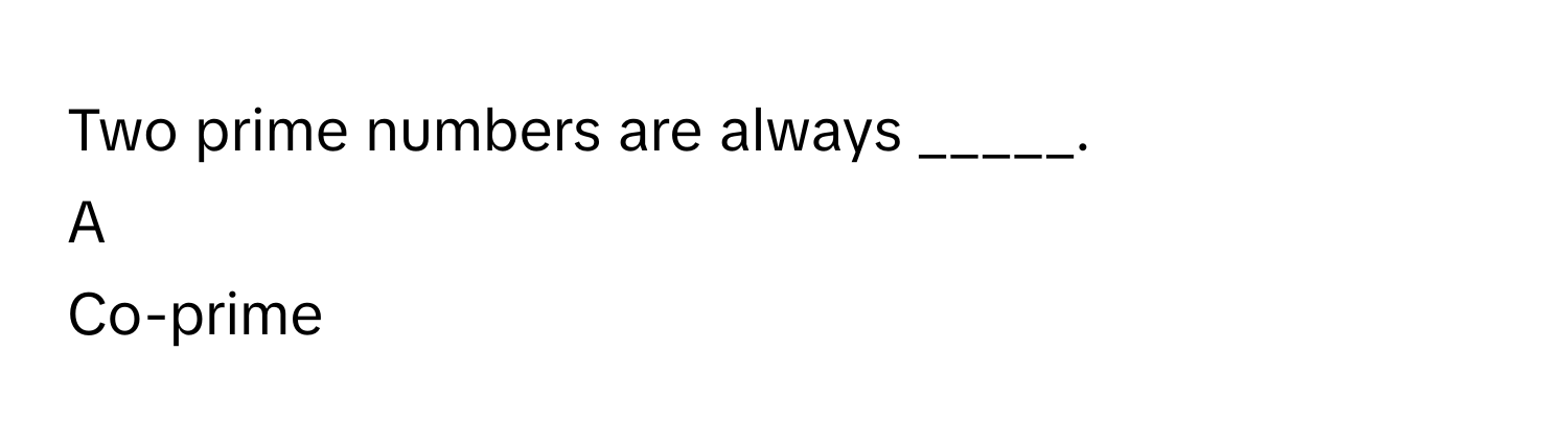 Solved: Two prime numbers are always _____. A Co-prime [Math]