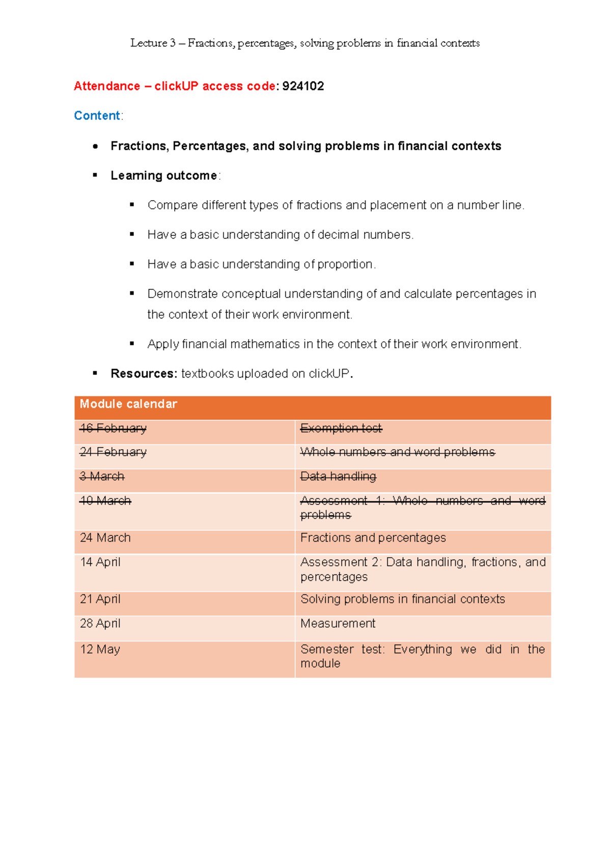 Lecture 3: Fractions, Percentages, Financial Problem Solving - Studocu
