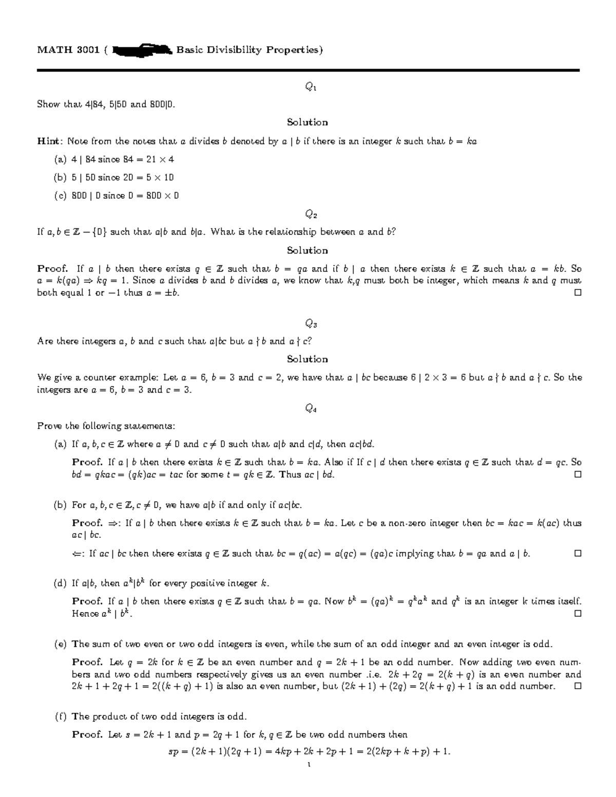 MATH 3001 Solutions Tutorial 4: Basic Divisibility Properties - Studocu