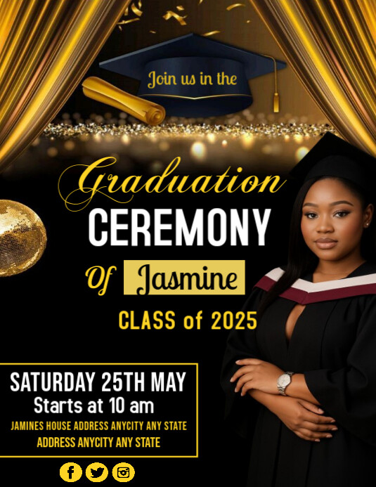 Black Graduation Ceremony Invitation Flyer (us Letter) Template ...