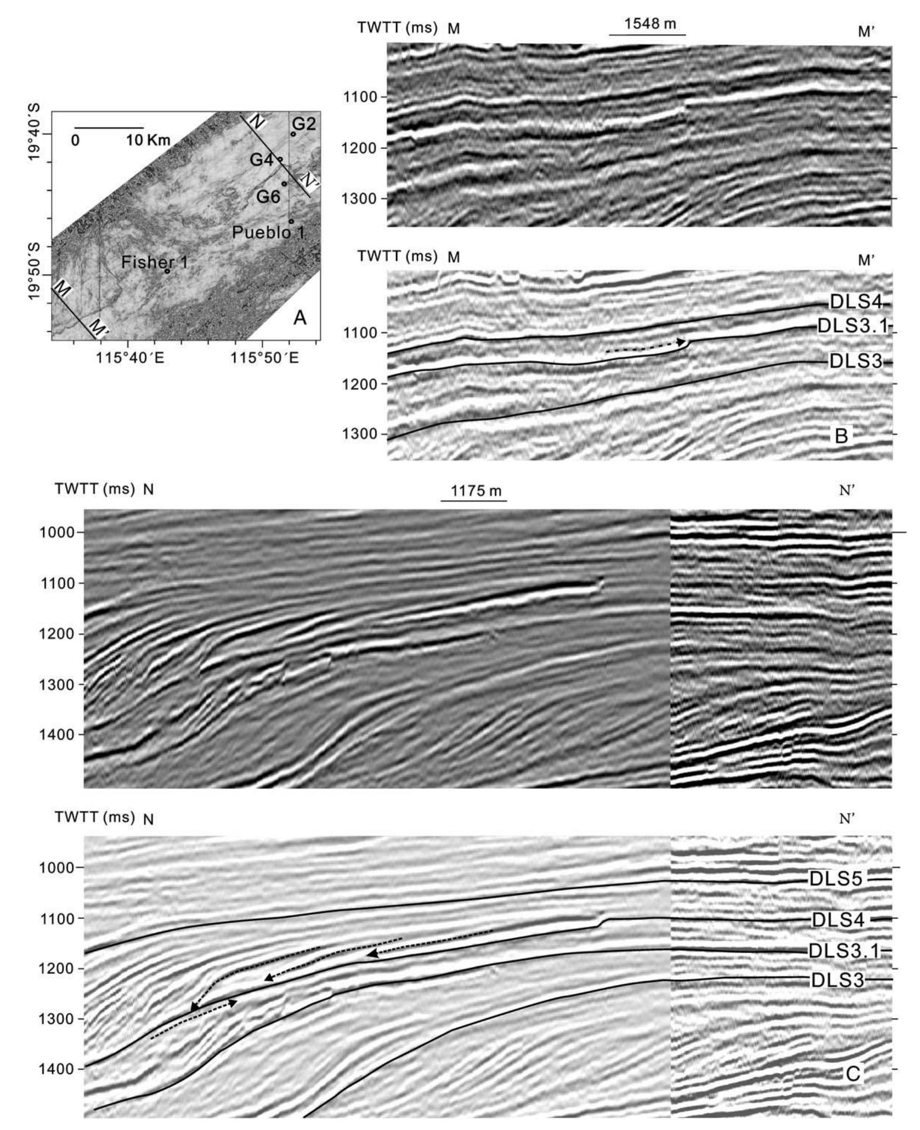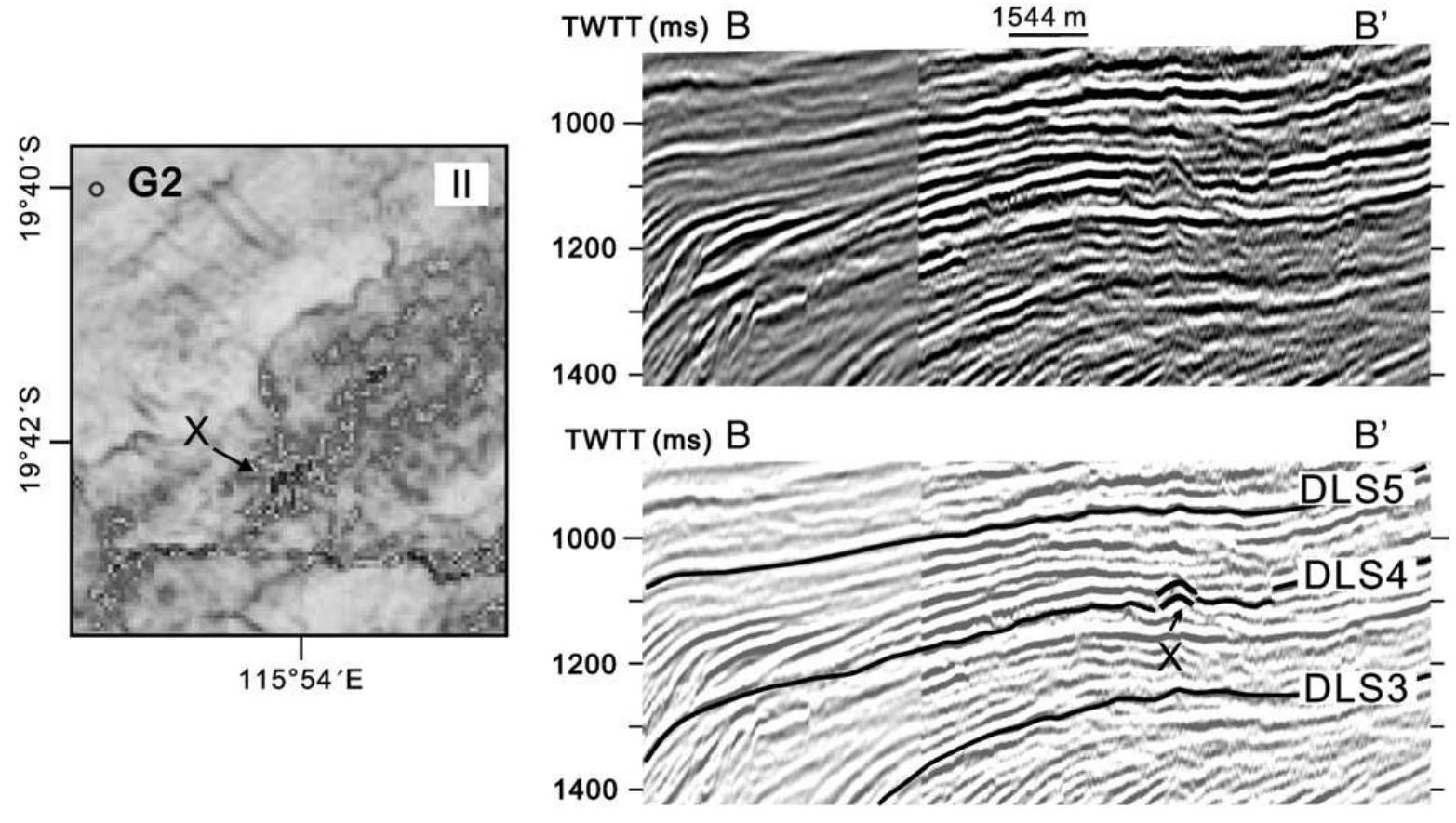 Seismic characters of dls3.1 and dls4. a. coherence slice at
