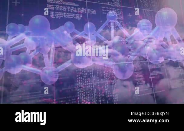 Fading 3D molecular chain rotating with pulsing highlights and code ...