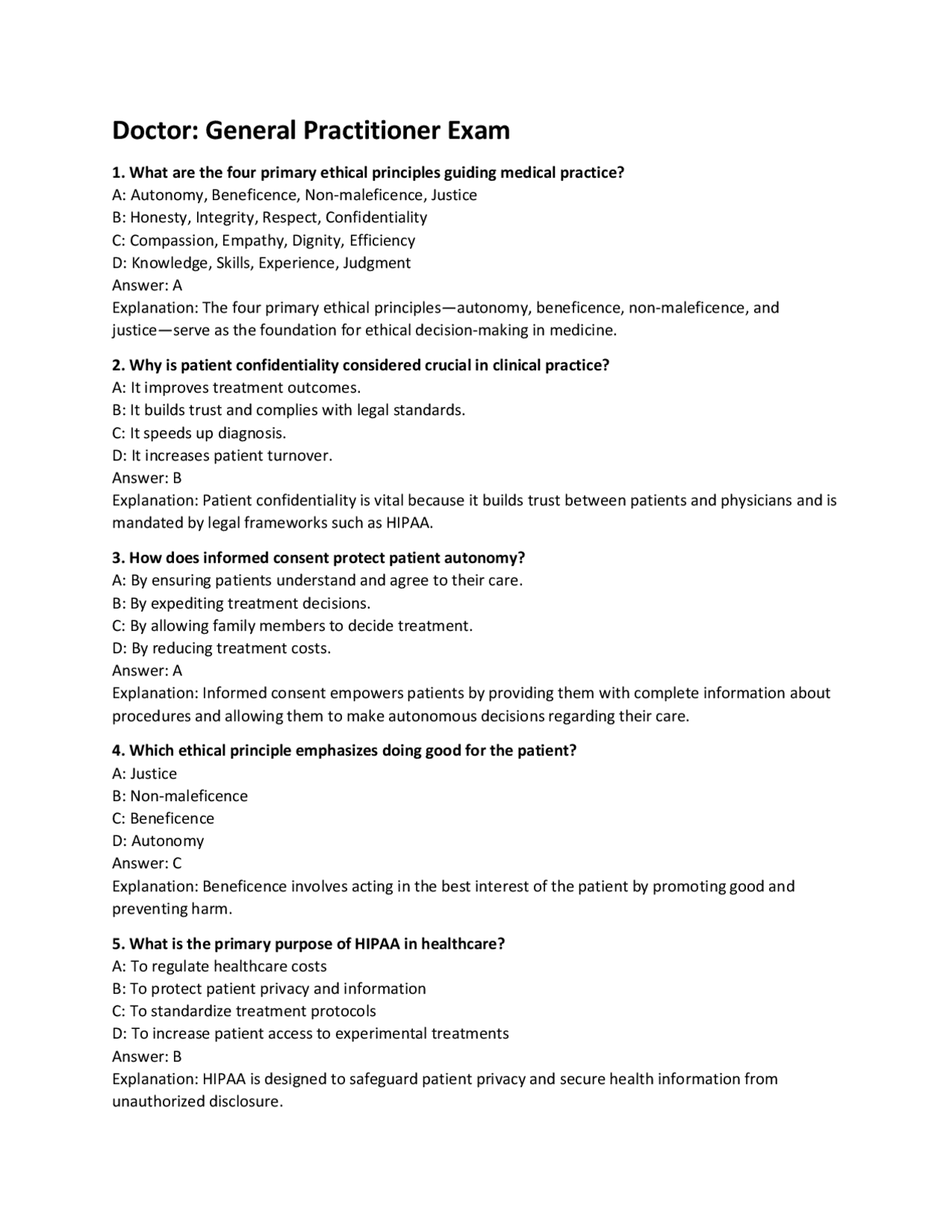 Doctor: General Practitioner Exam | Exams Technology | Docsity