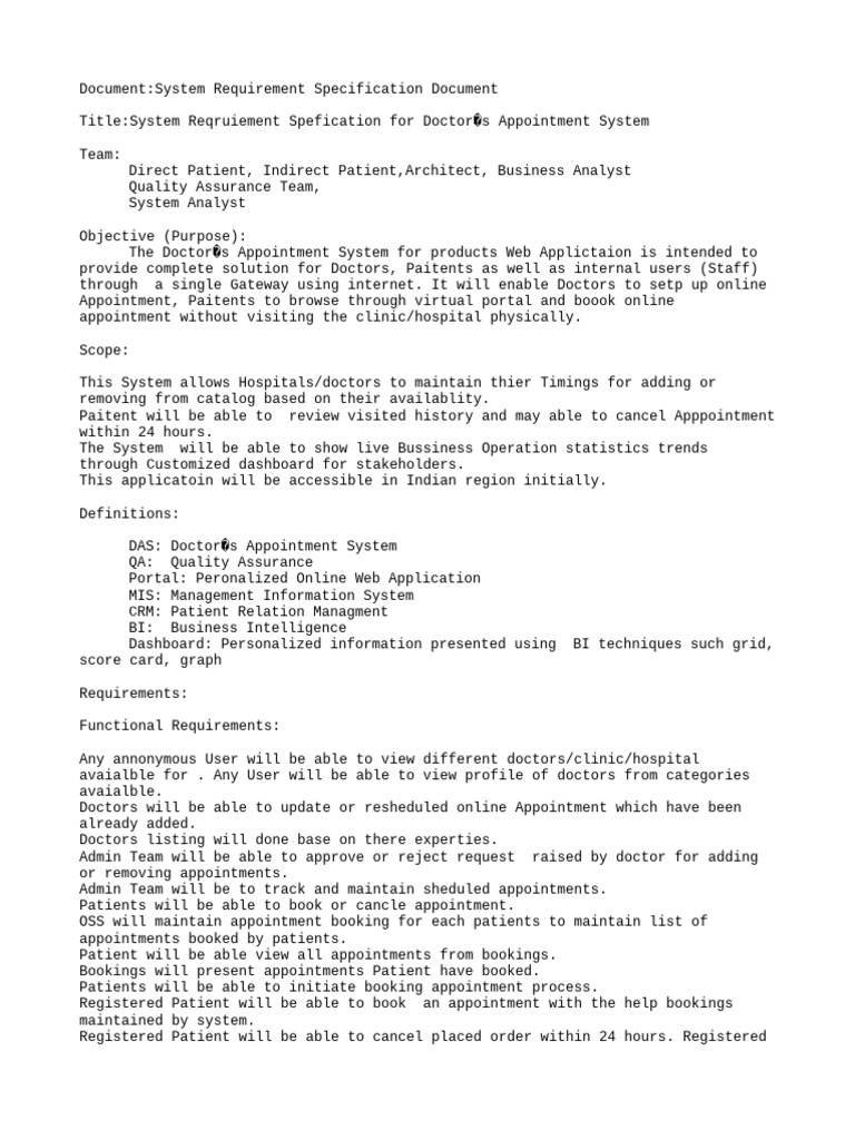 Doctor Appointment System Requirements | PDF | Use Case | Server ...