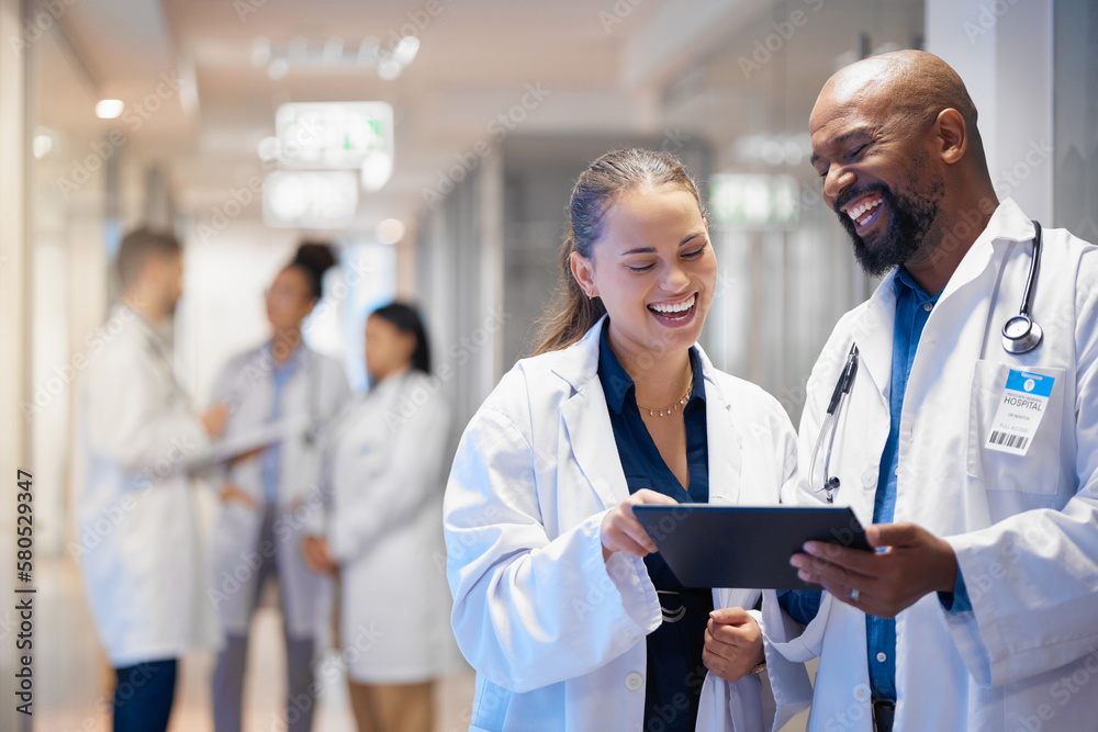 Doctors teamwork on tablet for hospital research management, employees ...