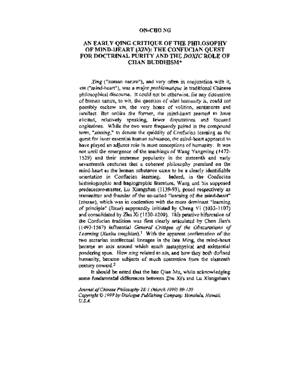 (PDF) An Early Qing Critique of the Philosophy of Mind-Heart (XIV):The ...