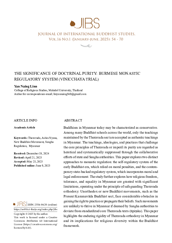 (PDF) THE SIGNIFICANCE OF DOCTRINAL PURITY: BURMESE MONASTIC REGULATORY ...