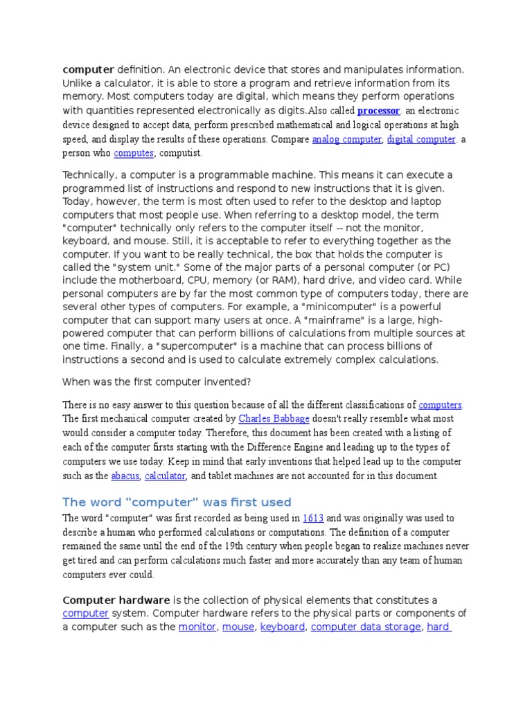 Computer Definition | PDF | Personal Computers | Computer Hardware