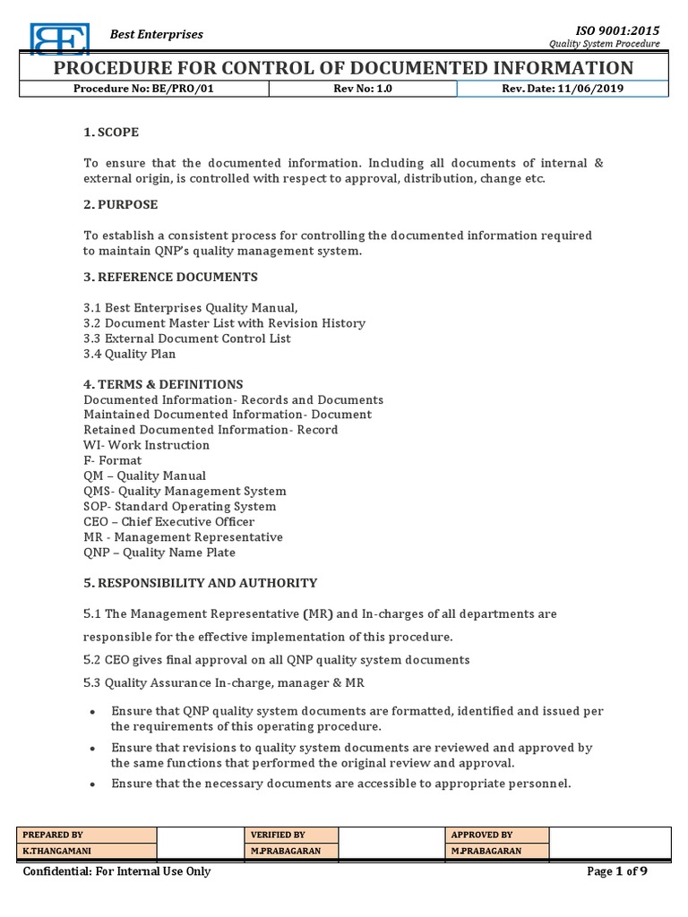 Document Control Procedure Manual | PDF | Quality Management System ...
