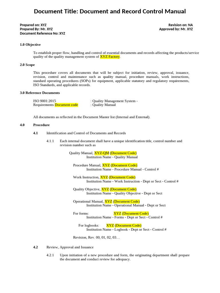 Document and Record Control Procedure | PDF | Quality Management System ...