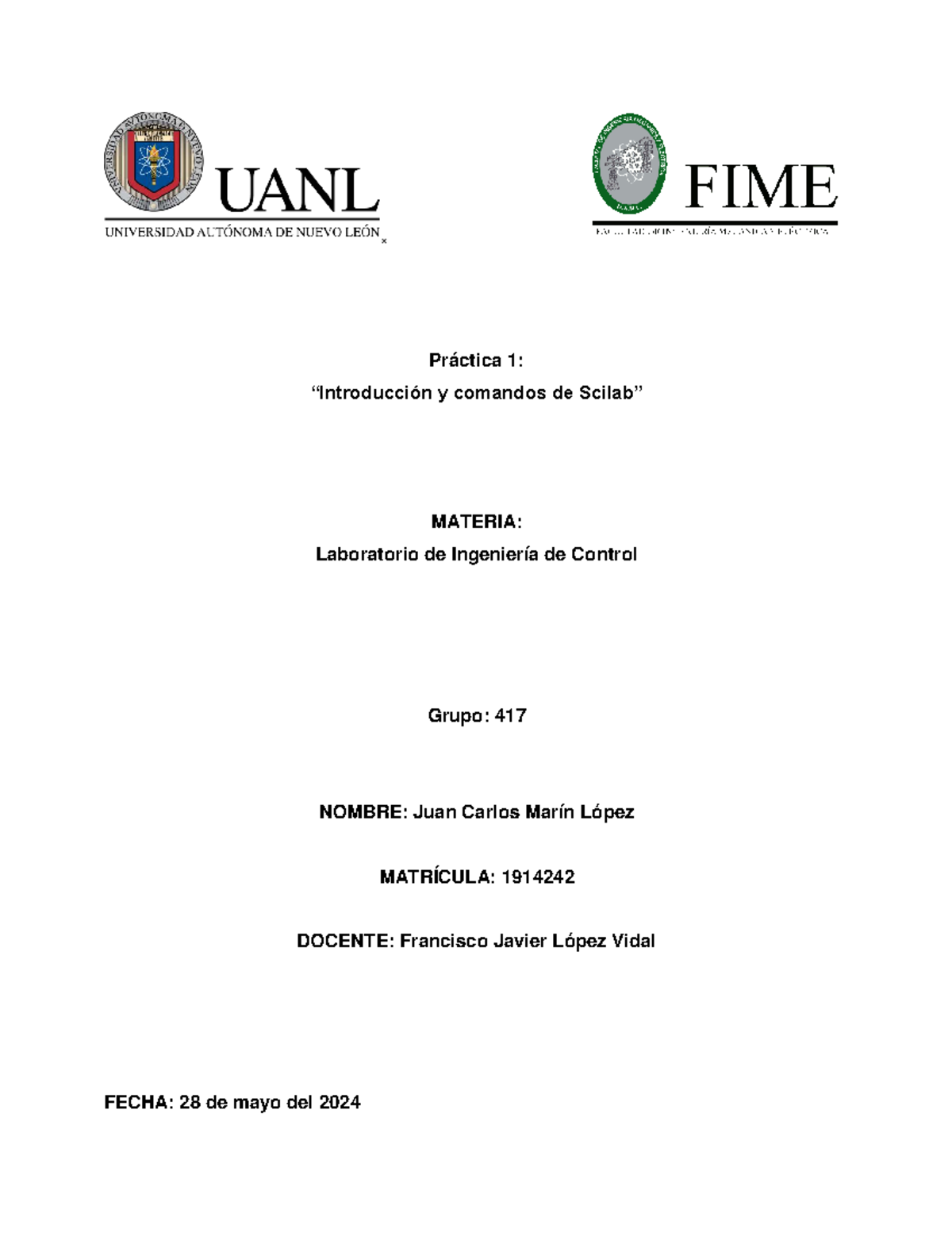 Práctica 1: Operaciones y Gráficas en Scilab - Ing. Control 417 - Studocu