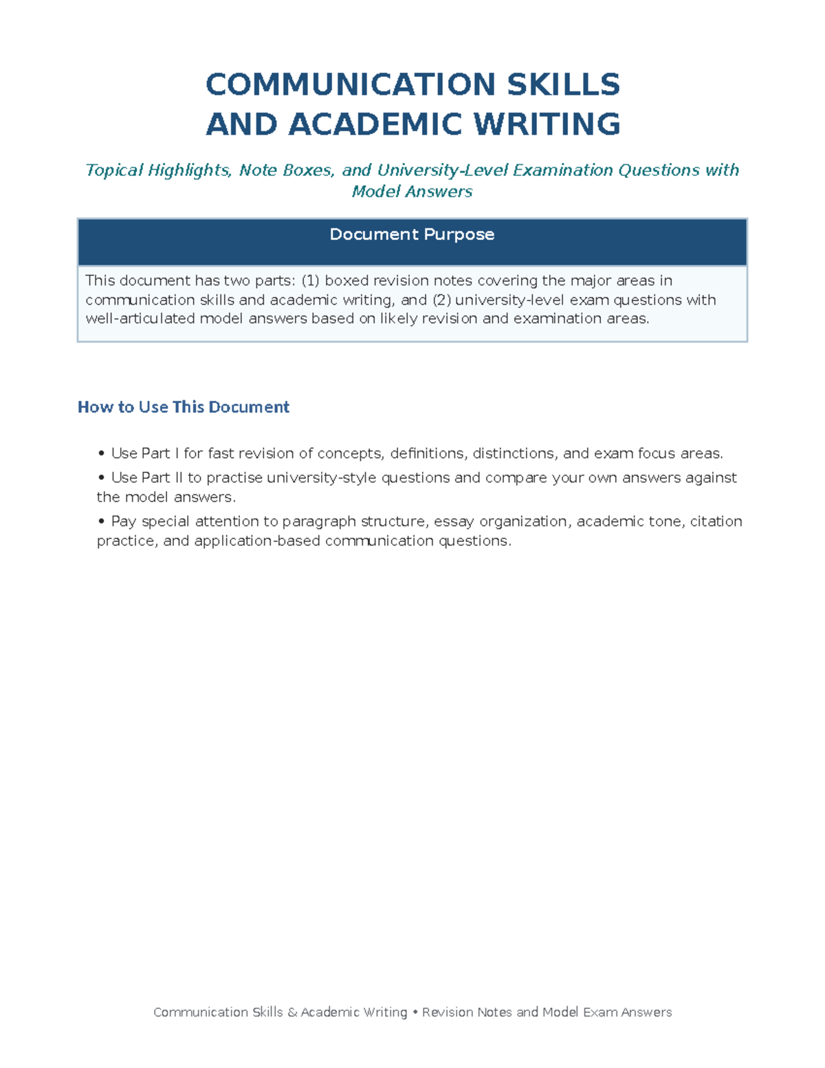 COMM 101: Communication Skills & Academic Writing Revision Notes & Exam ...