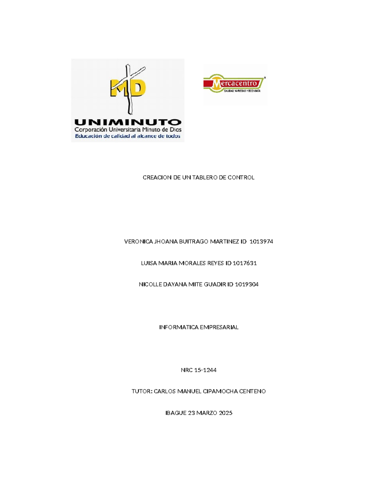 Creación de un Tablero de Control en Power BI para Mercacentro - Studocu