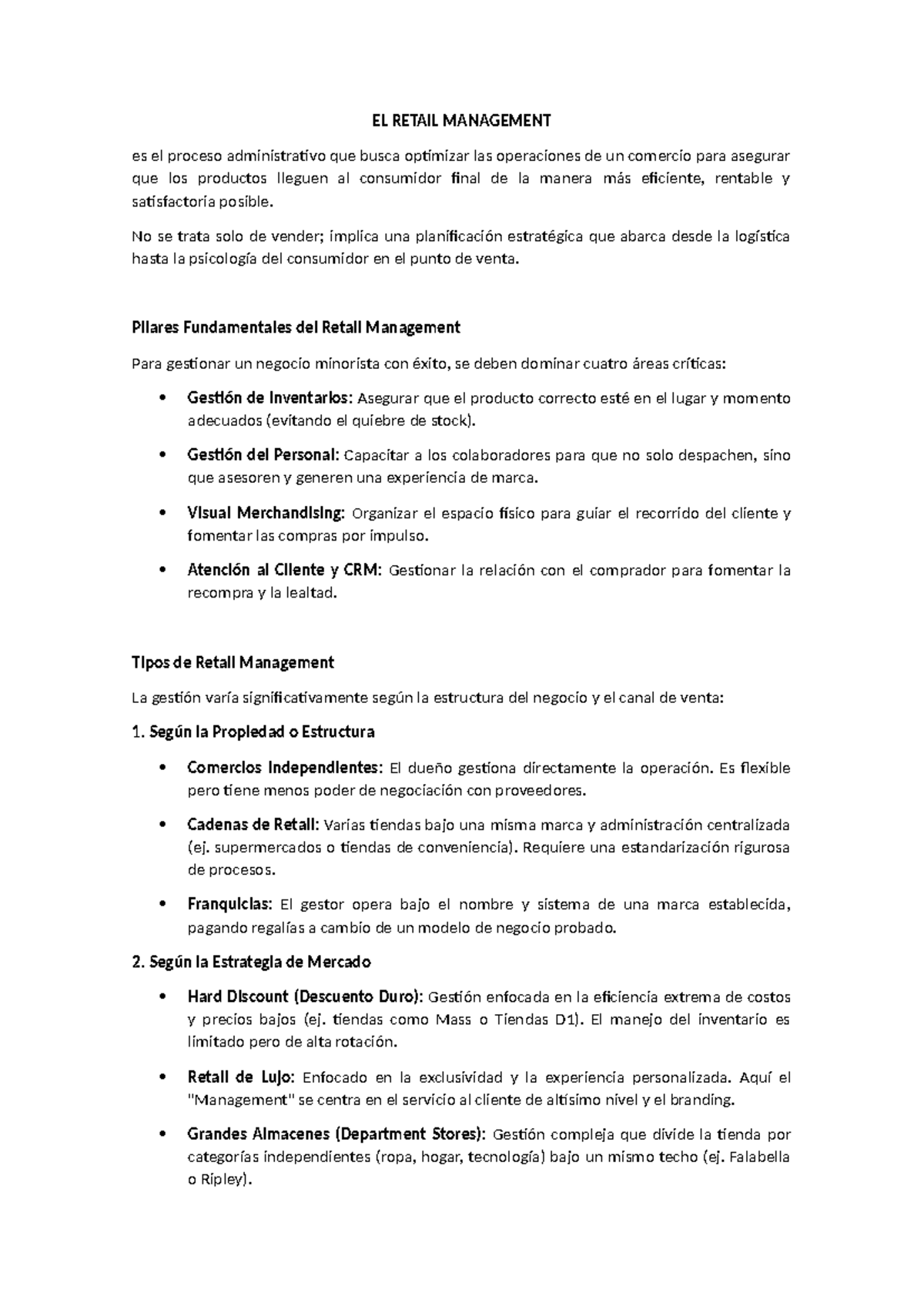 Introducción al Retail Management: Tipos y Estrategias Clave - Studocu