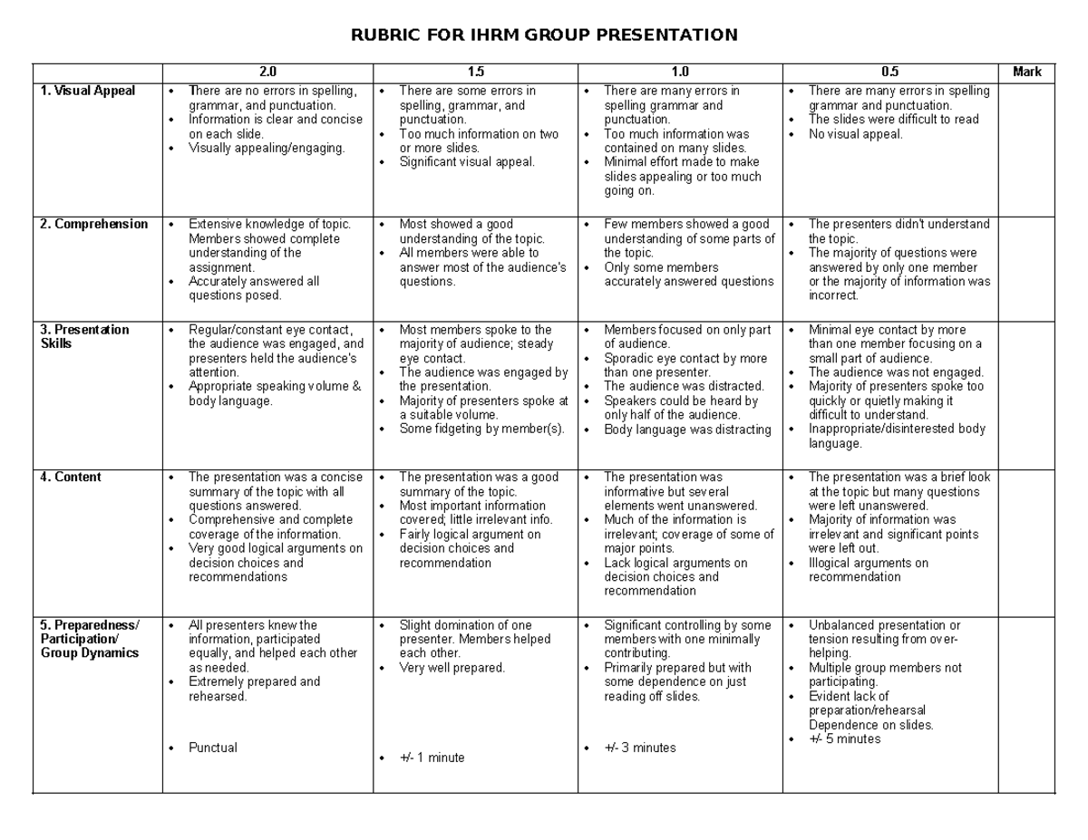 IHRM Group Presentation Rubric - Evaluation Criteria 2023 - Studocu