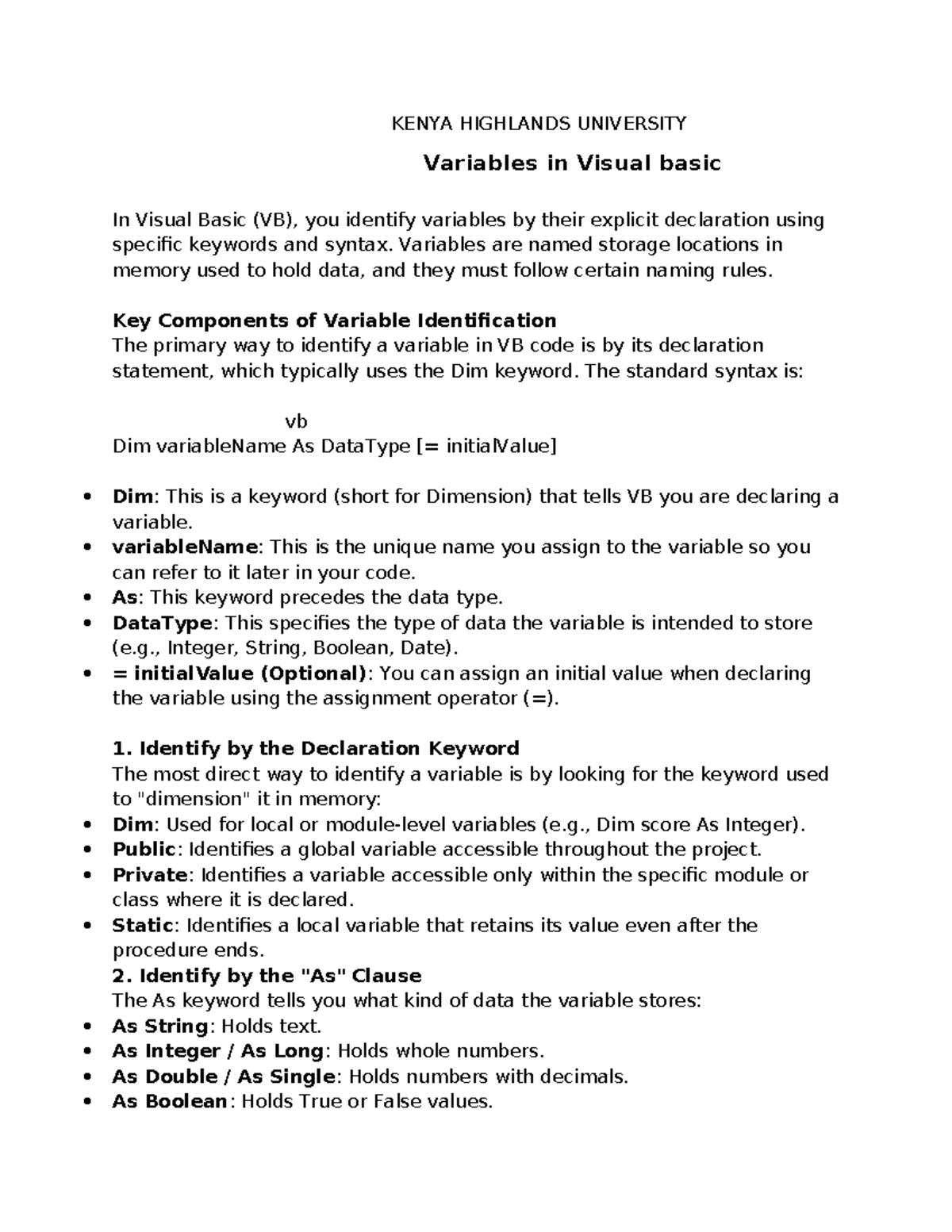 Event-Driven Programming in VB: Notes for DIT 403 - Studocu