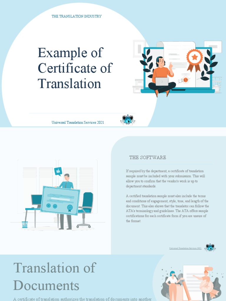 Example of Certificate of Translation by Universal-Translation-Services ...
