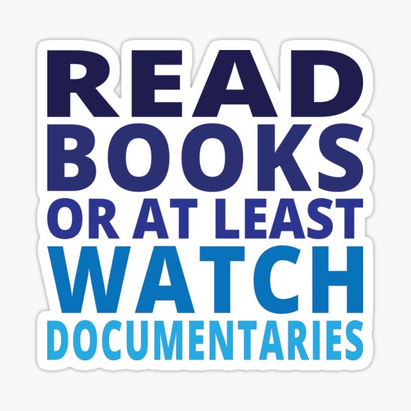 "Read books or at least watch documentaries" Sticker by koshodesign ...