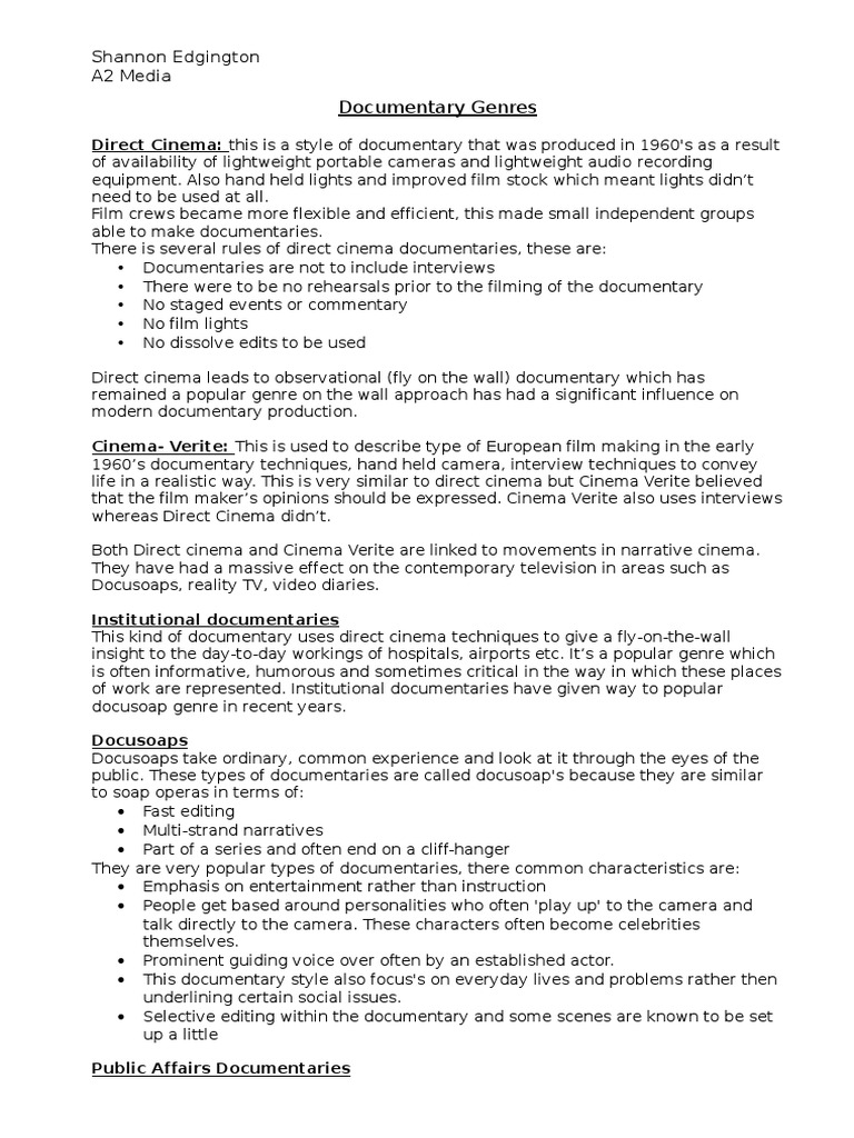 Overview of Documentary Genres | PDF | Documentary Film | Reality ...