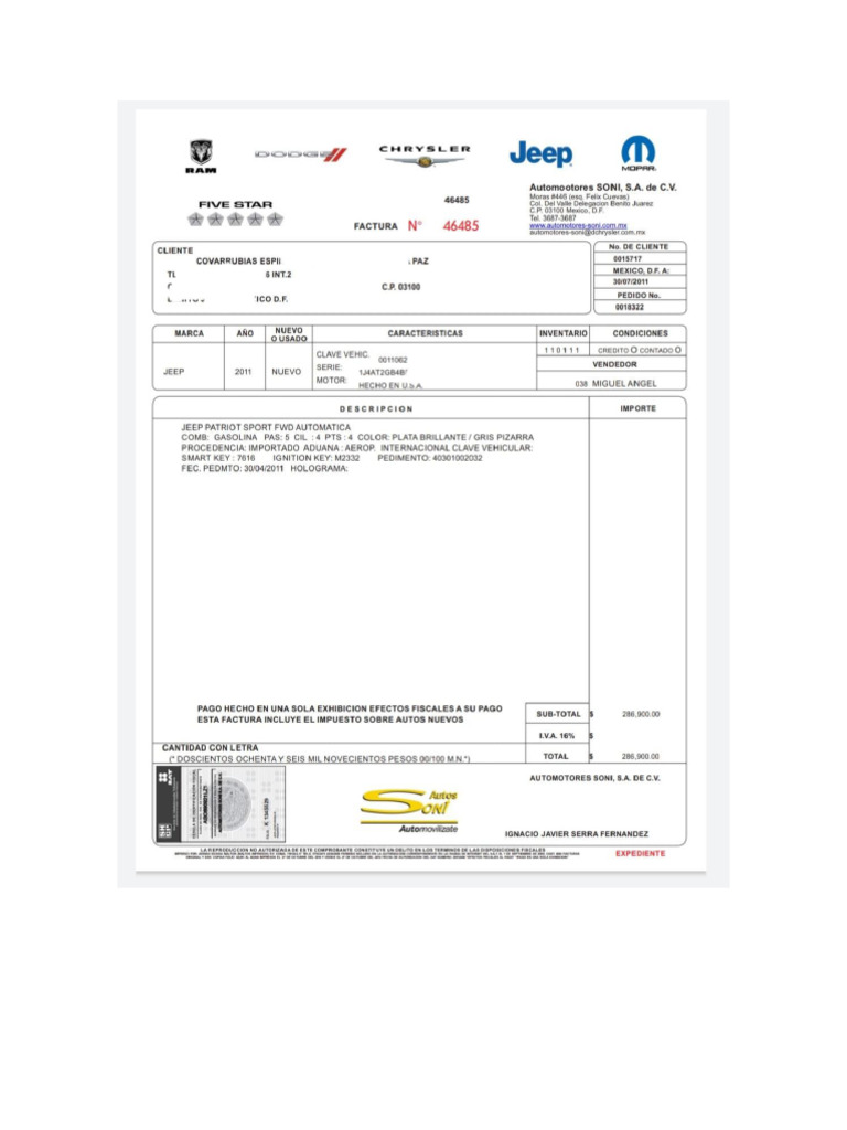 Factura Jeep, Dodge, Chrysler, Ram Seminuevos | PDF | Fabricantes de ...