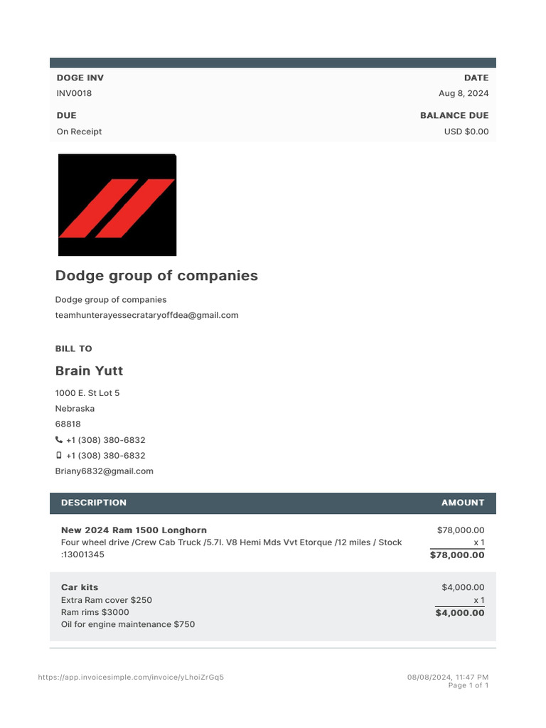 DODGE INVOICE | PDF