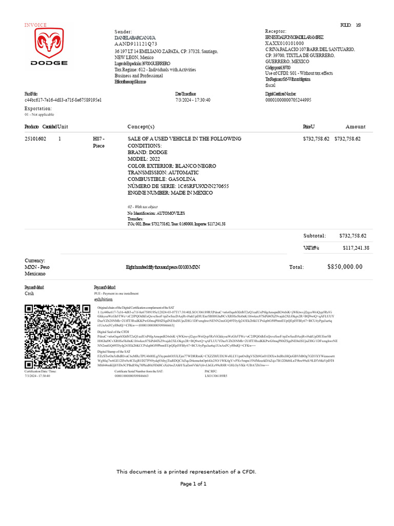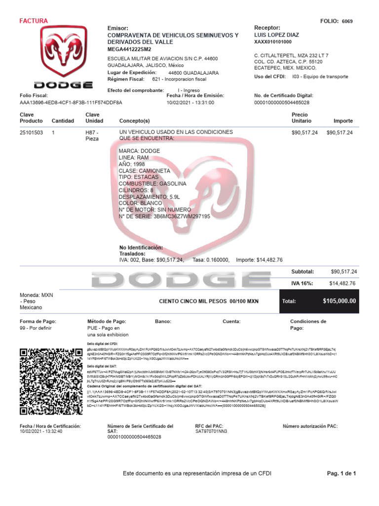 Factura Dodge | PDF