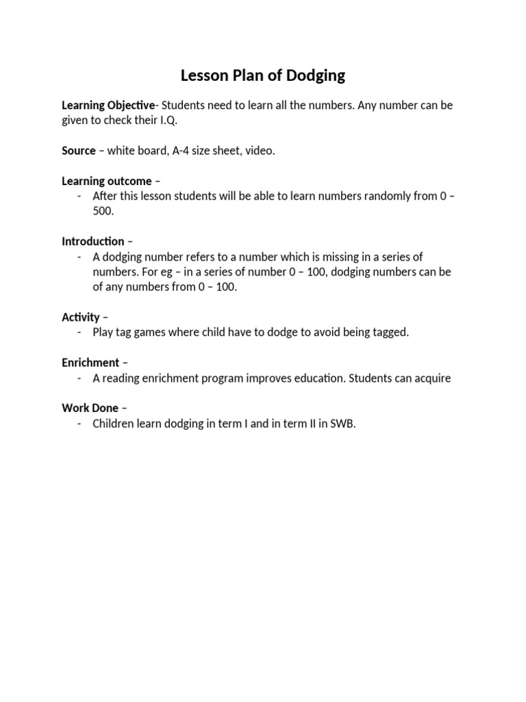 Dodging Numbers Lesson Plan | PDF