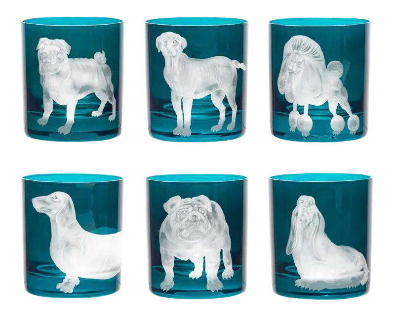 ARTEL Dog Collection Set of Double Old Fashioned Glasses, Peacock, Set ...