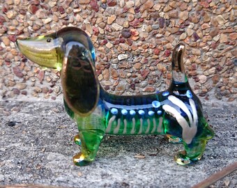 Glass Dog Figurine, Vintage Glass Dog, Candy Glass Dog Statue ...