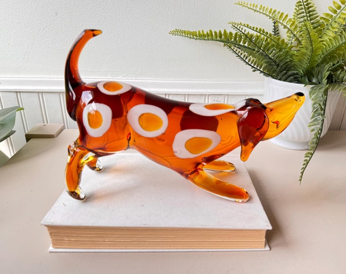 Vintage 1970s Murano Hand Blown Glass Dog, MCM Mid Century Spotted Dog ...