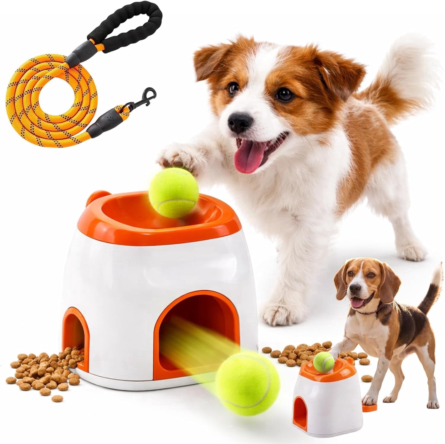 Automatic Dog Tennis Ball Launcher & Treat Dispenser, 2-in-1 Pet Ball ...