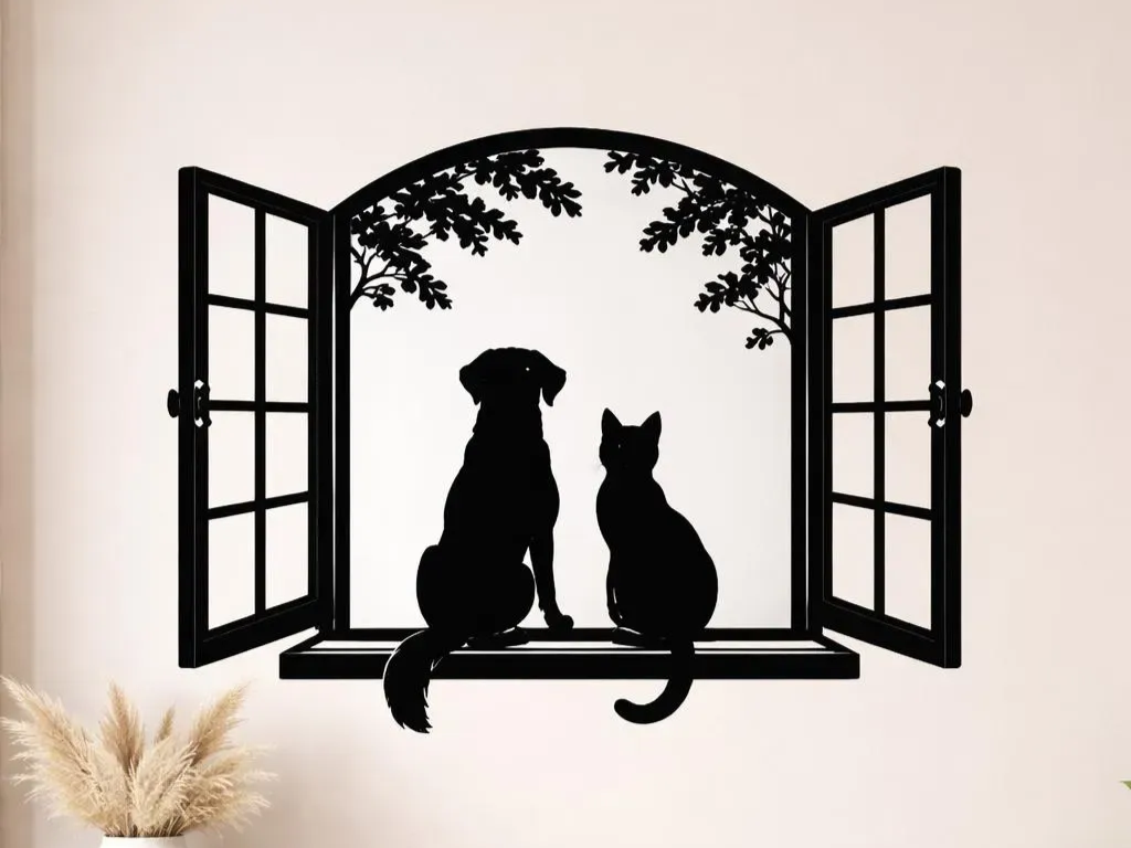 Dog Cat Window SVG | Pet Silhouette Laser Cut Wall Art (Digital ...