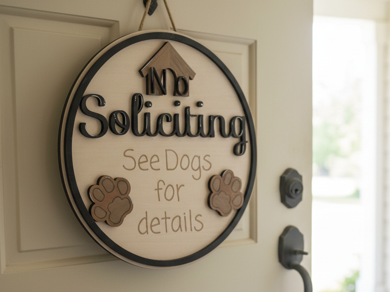 No Soliciting See Dogs for Details Round Door Sign | Ready to Use Files ...