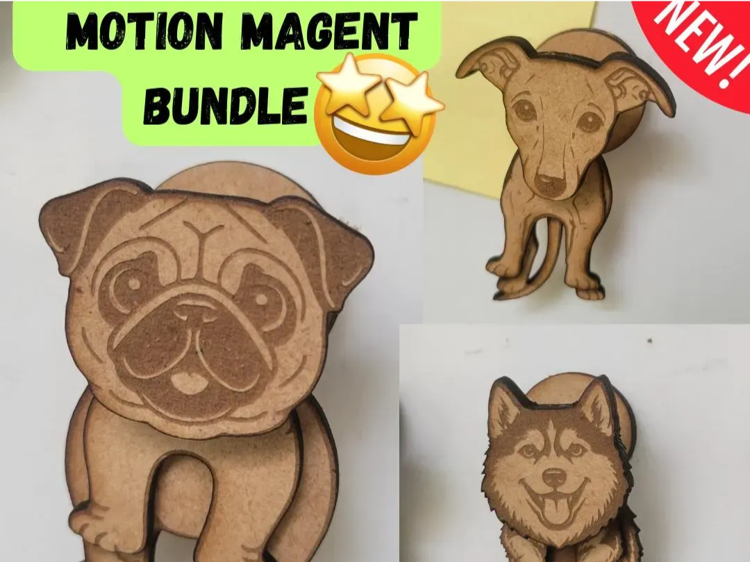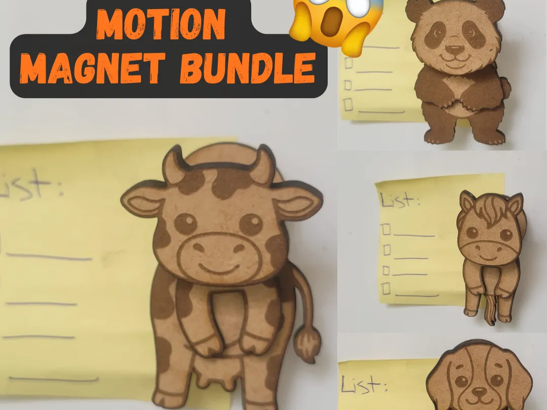Laser Cut Animal Motion Magnet Bundle with Panda, Cow, Horse, Dog ...