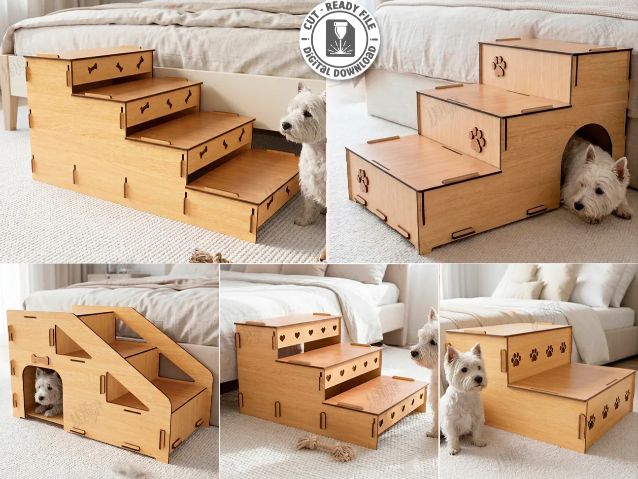 Pet Stairs - Pet Step Stool with Integrated Bed Cave for Small Dogs ...
