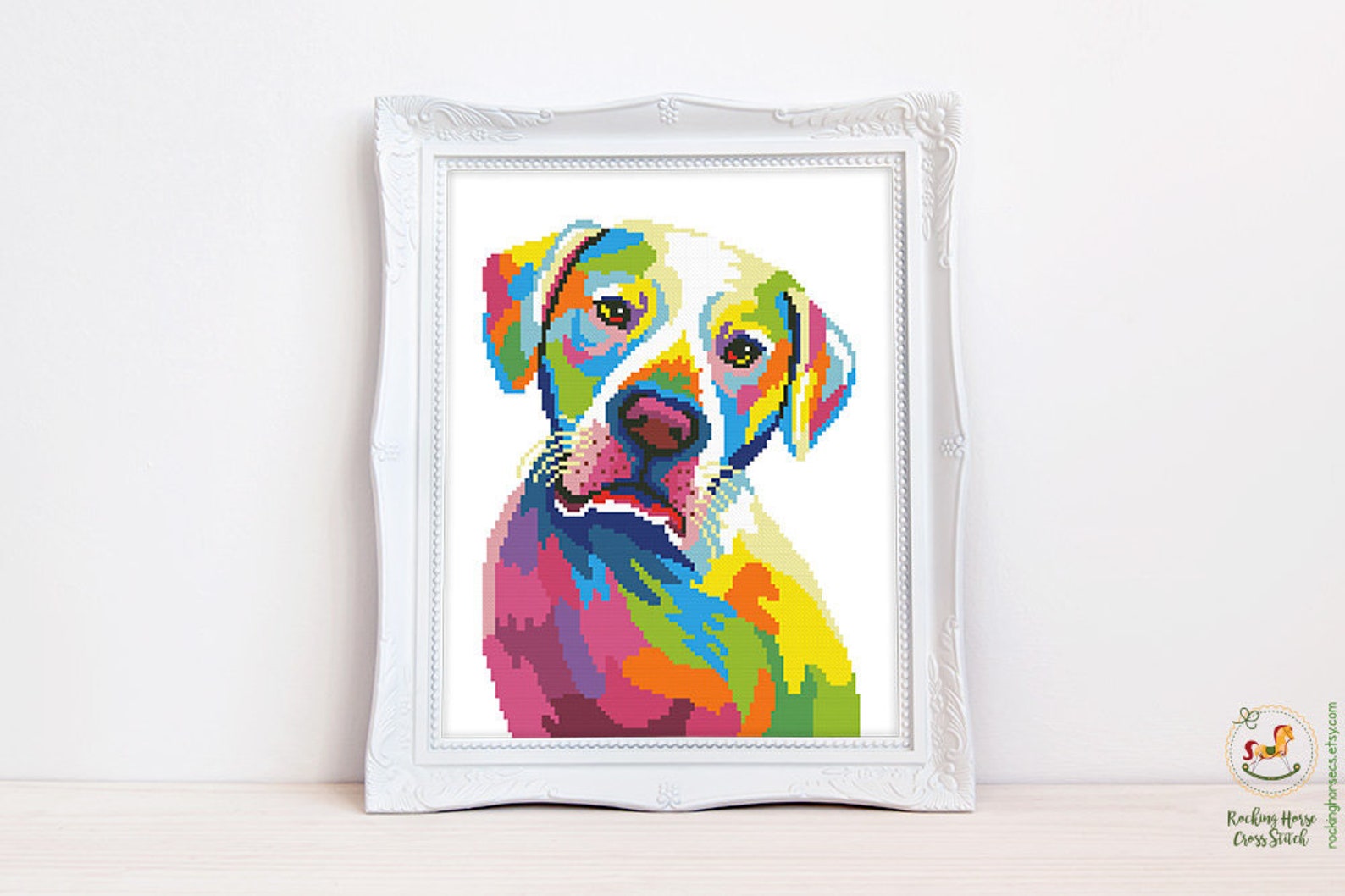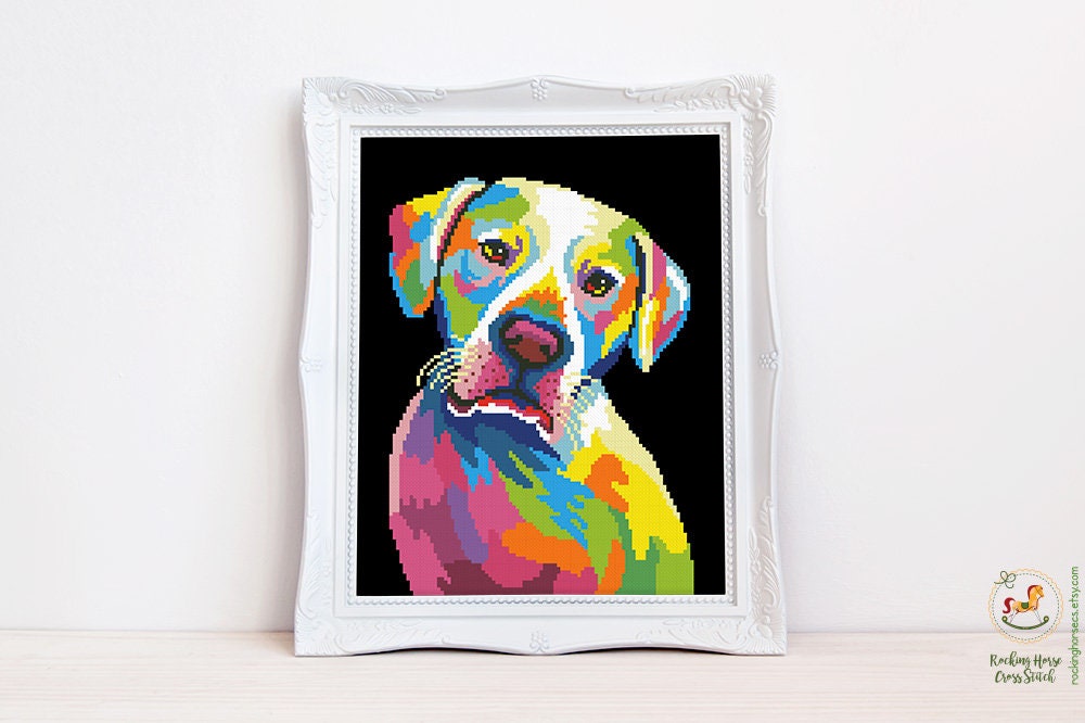Colorful Dogo Argentino Cross Stitch Pattern Abstract Rainbow Dog ...