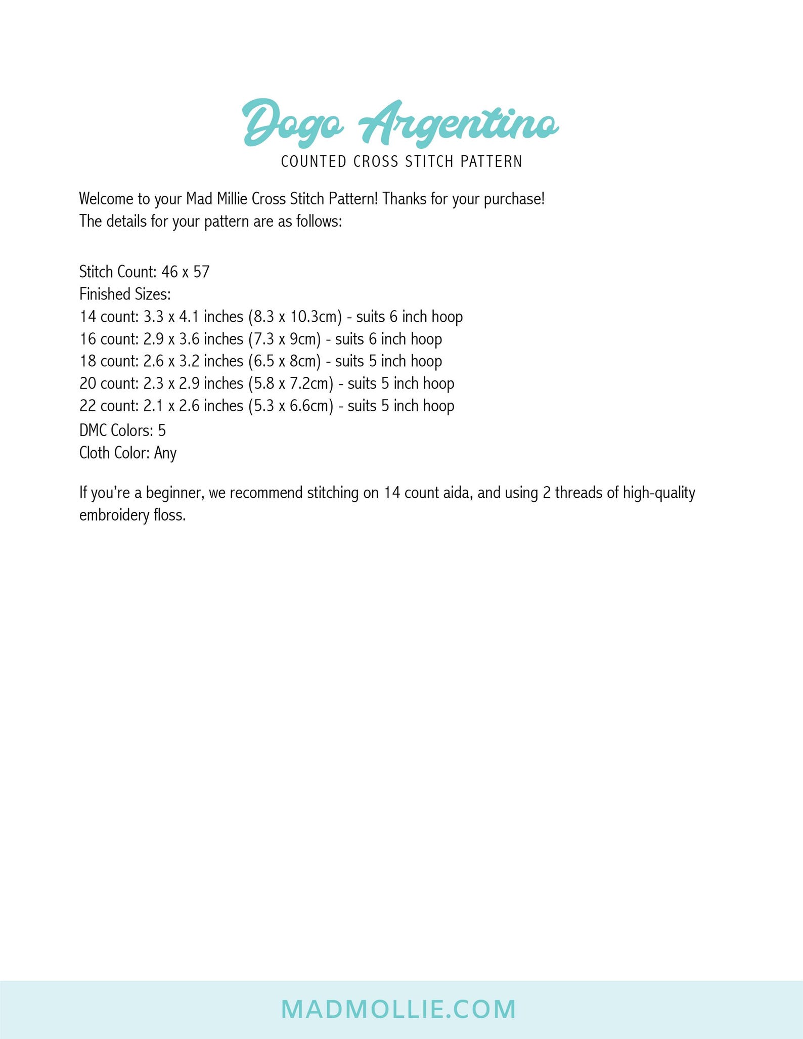 Dogo Argentino Cross Stitch Pattern: Easy Beginner Dog Design (PDF ...