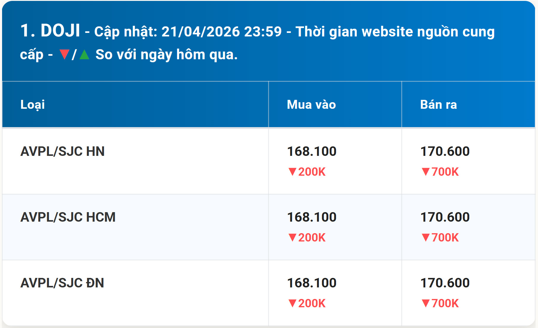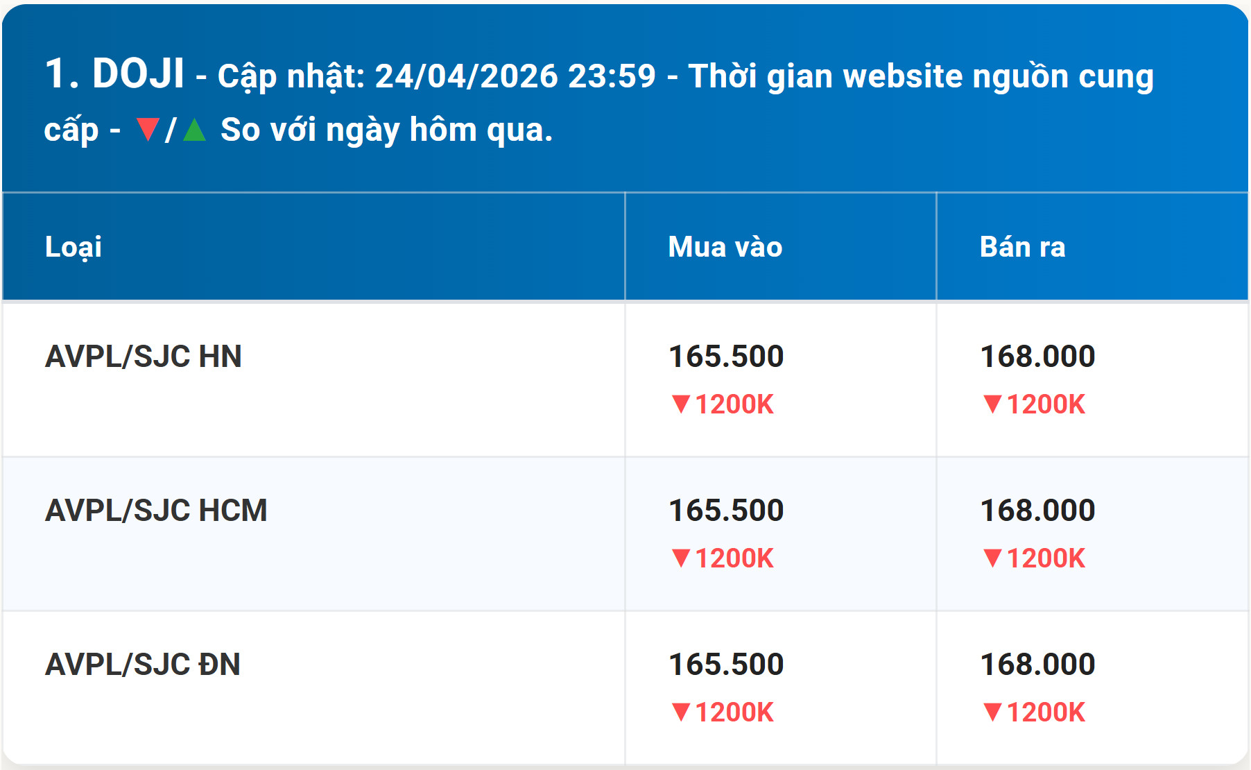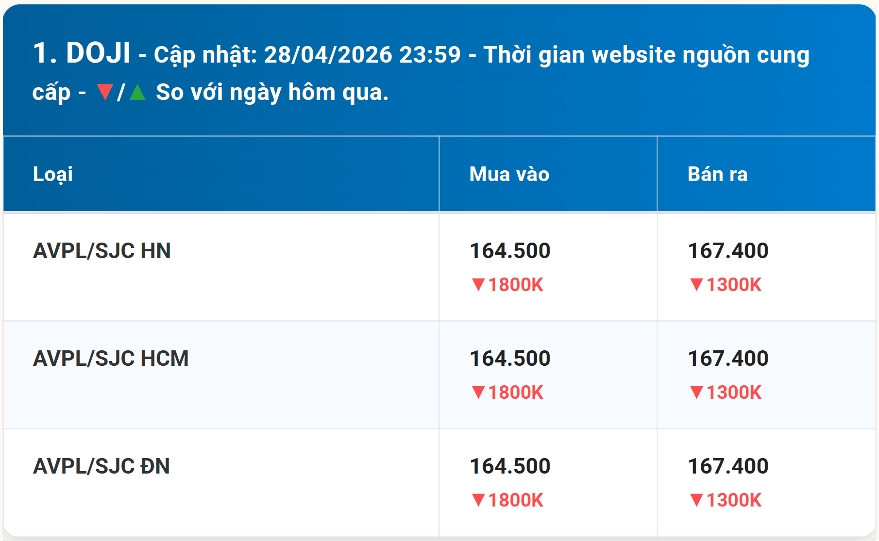 Giá Vàng DOJI hôm nay | Cập nhật Bảng giá vàng mới nhất