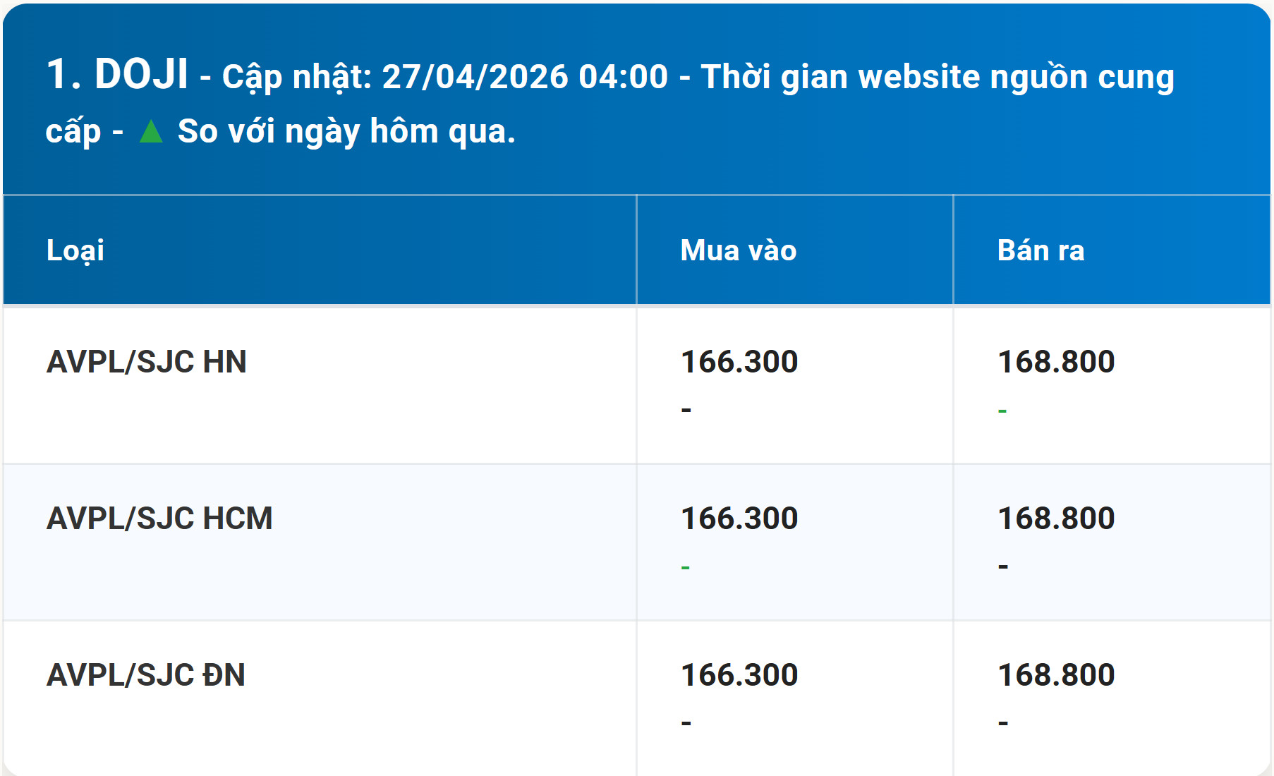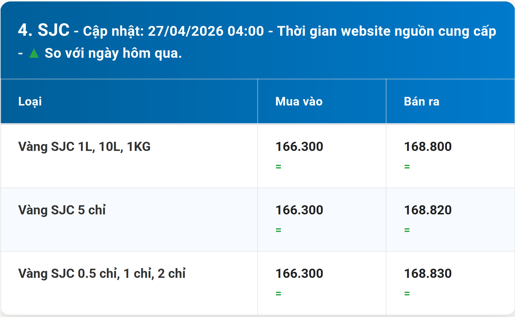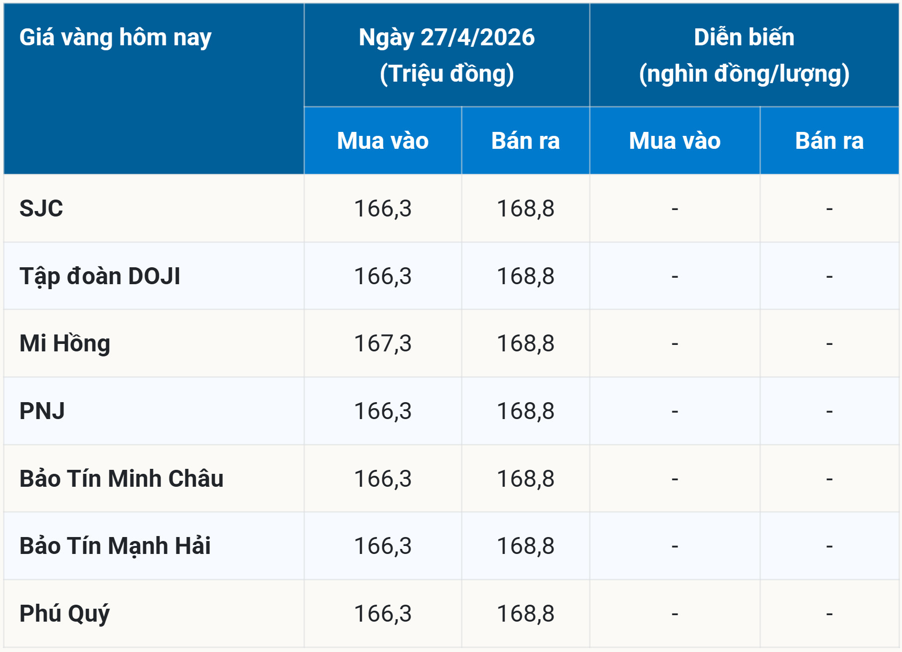 מחירי זהב ביום שני, 27 באפריל, 2026: זהב SJC, טבעות BTMC, BTMH, DOJI ...
