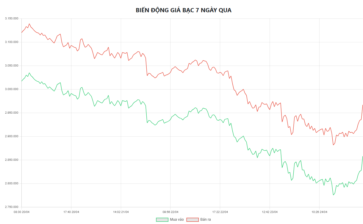 Giá bạc hôm nay 24/4 giảm mạnh, bạc Phú Quý và bạc DOJI lùi sâu về mốc ...