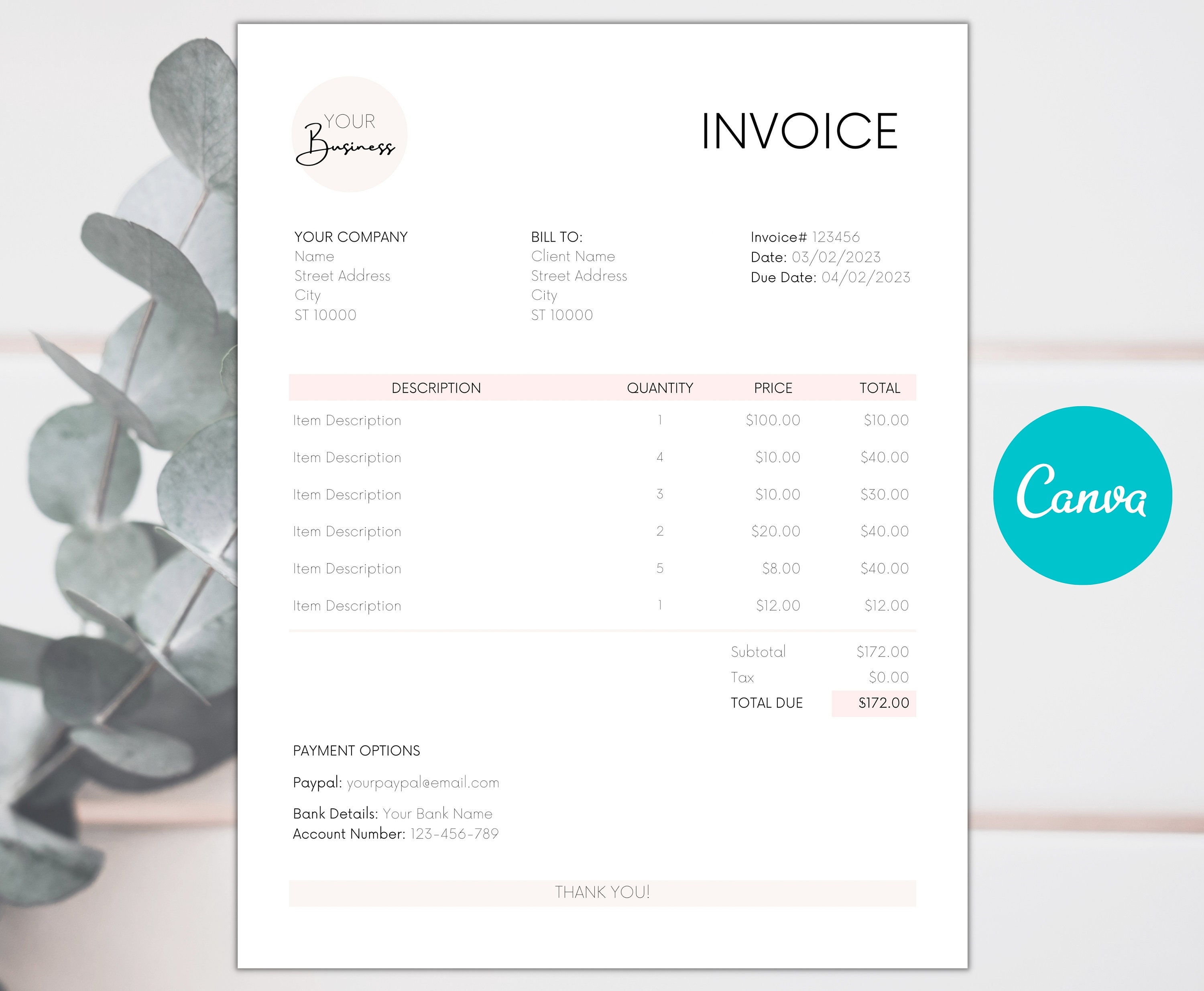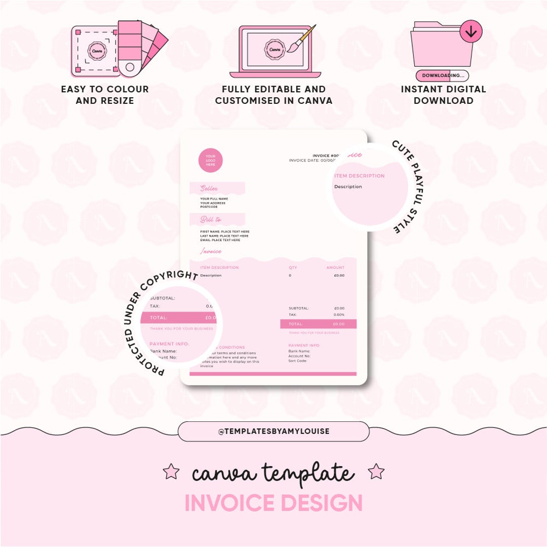 Invoice Template CANVA / Pink Billing Form / Editable / - Etsy UK