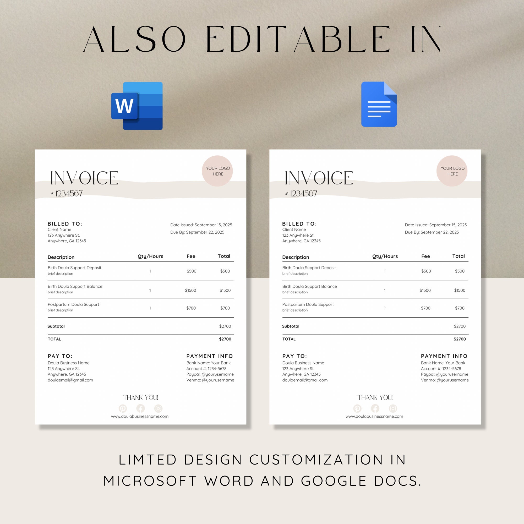 Doula Invoice Template, Birth Doula Invoice, Postpartum Doula Invoice ...