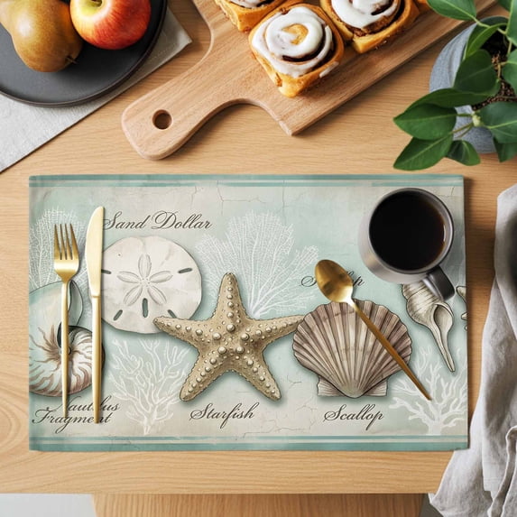 Coastal Ocean Placemats Set of 2, Sand Dollar Shells Starfish Teal ...