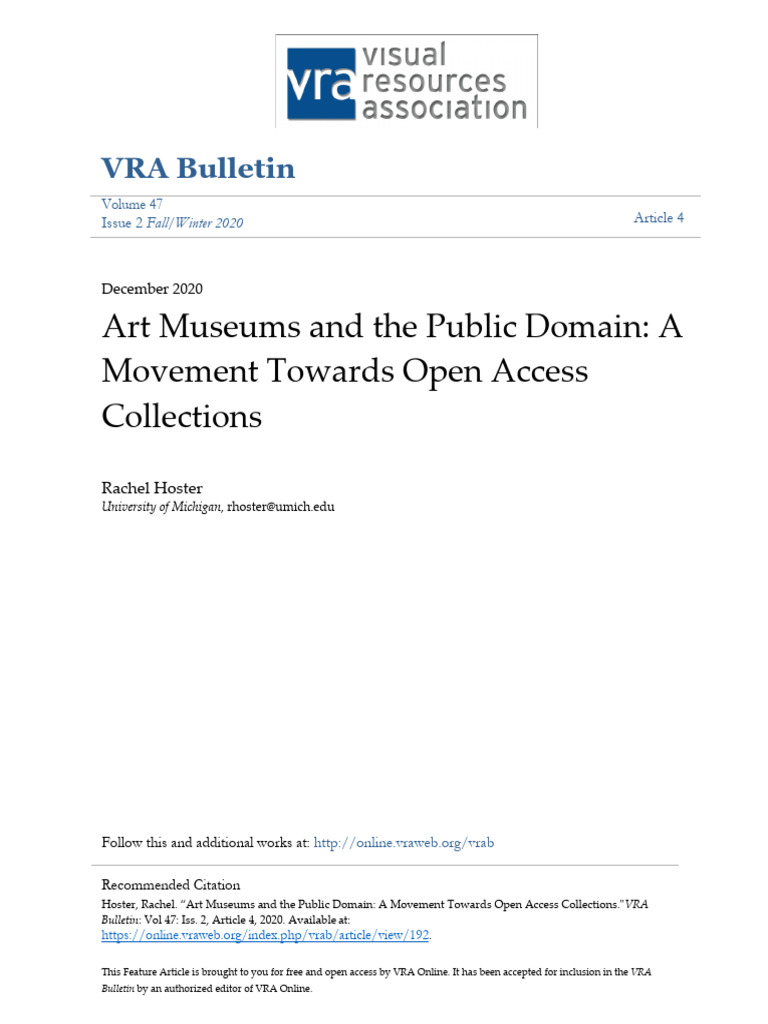 Art Museums and The Public Domain: A Movement Towards Open Access | PDF ...