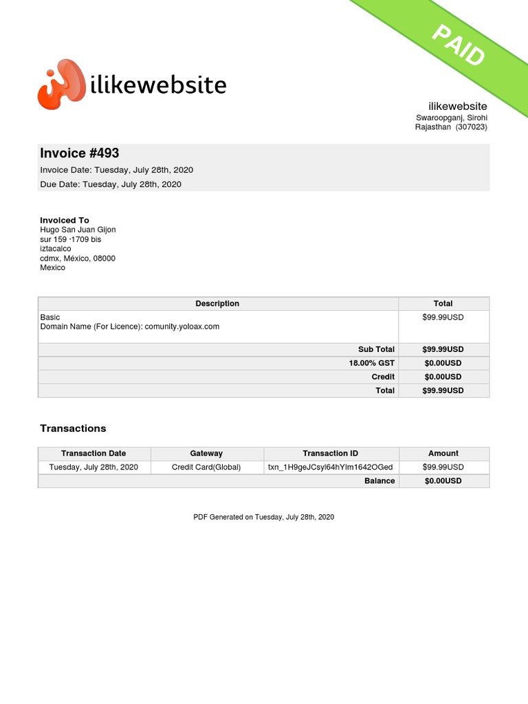 Invoice - Domain PDF | PDF