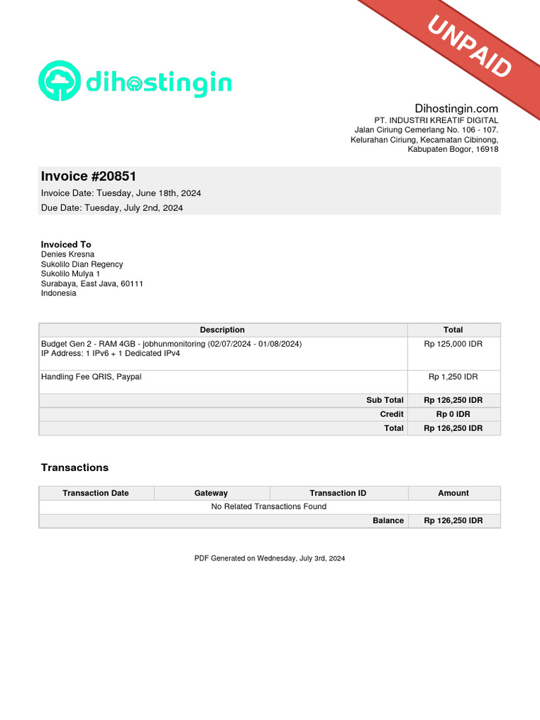 Invoice Pembelian Domain & Hosting - NiagaPratamaSejahtera | PDF