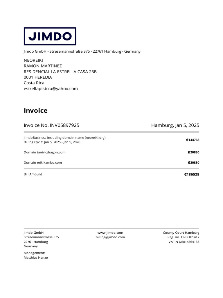 Jimdo Invoice for Domain Services | PDF